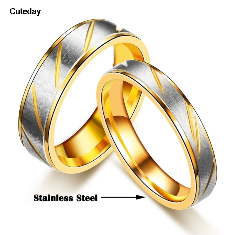 Anéis de Casal com Design Exclusivo de Onda – Aço Inoxidável Premium