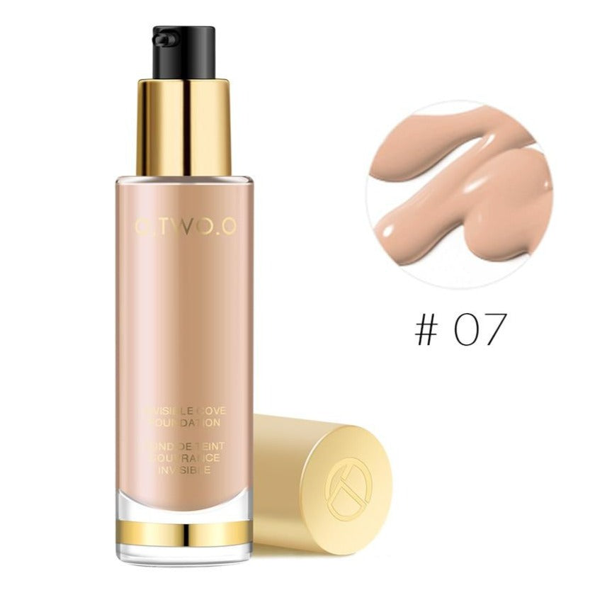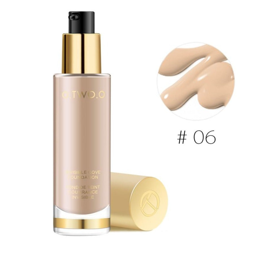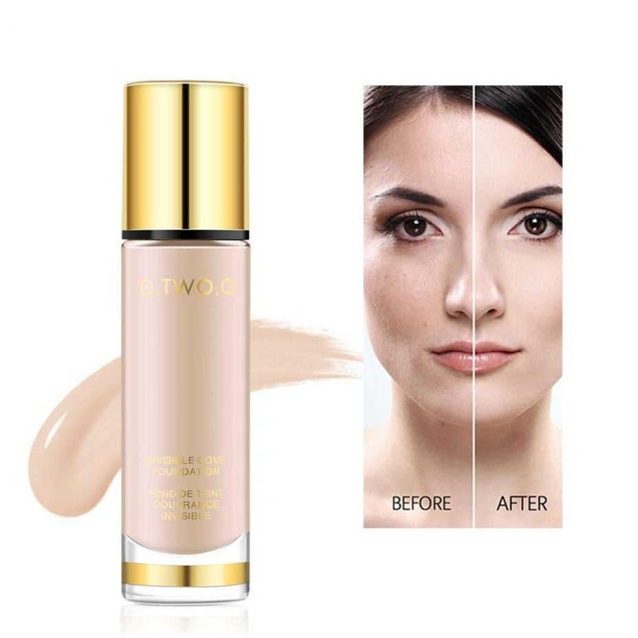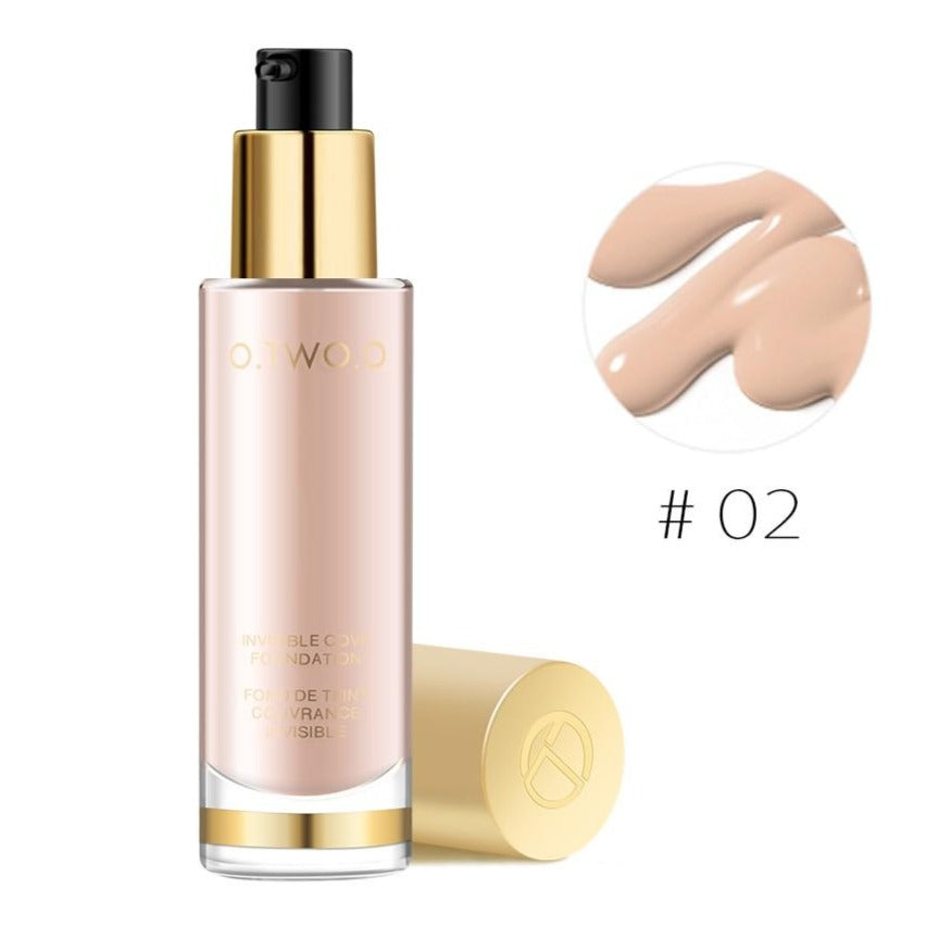 (1) Base Facial Líquida O.TWO.O Alta Cobertura é livre de óleo e não escorre, com duração de horas, se manterá maquiada por todo o dia, tem poder corretivo, de alta cobertura, cobrindo poros Não tem medo de alta temperatura, excelente efeito de controle de óleo, de manhã à noite, a maquiagem inferior é tão bonita como sempre!