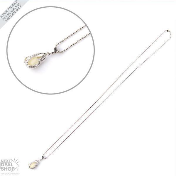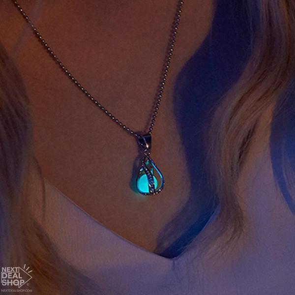 Descrição:Colar belamente trabalhado com uma pedra que brilha no escuro dentro de um pingente cortado.Principais Características: